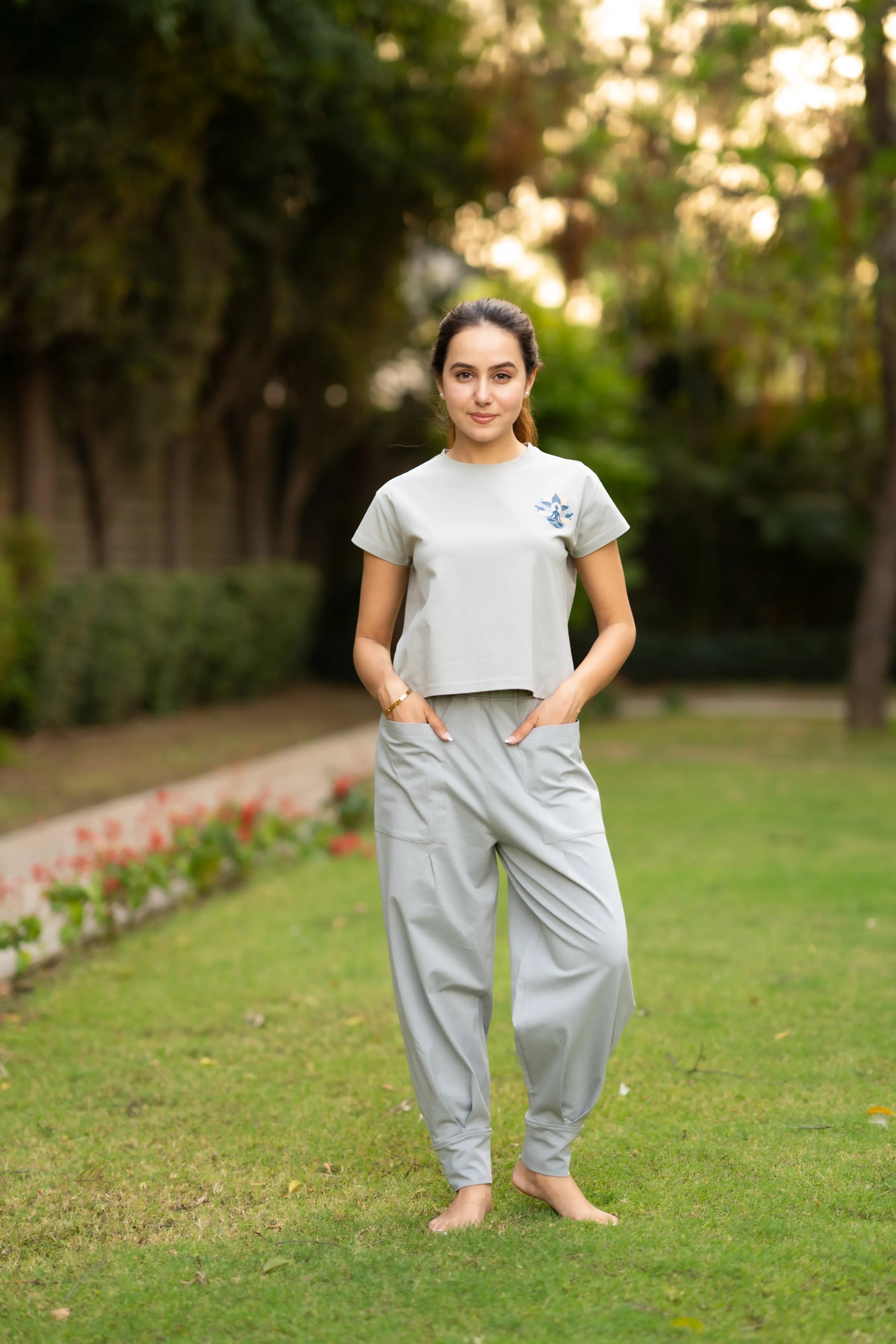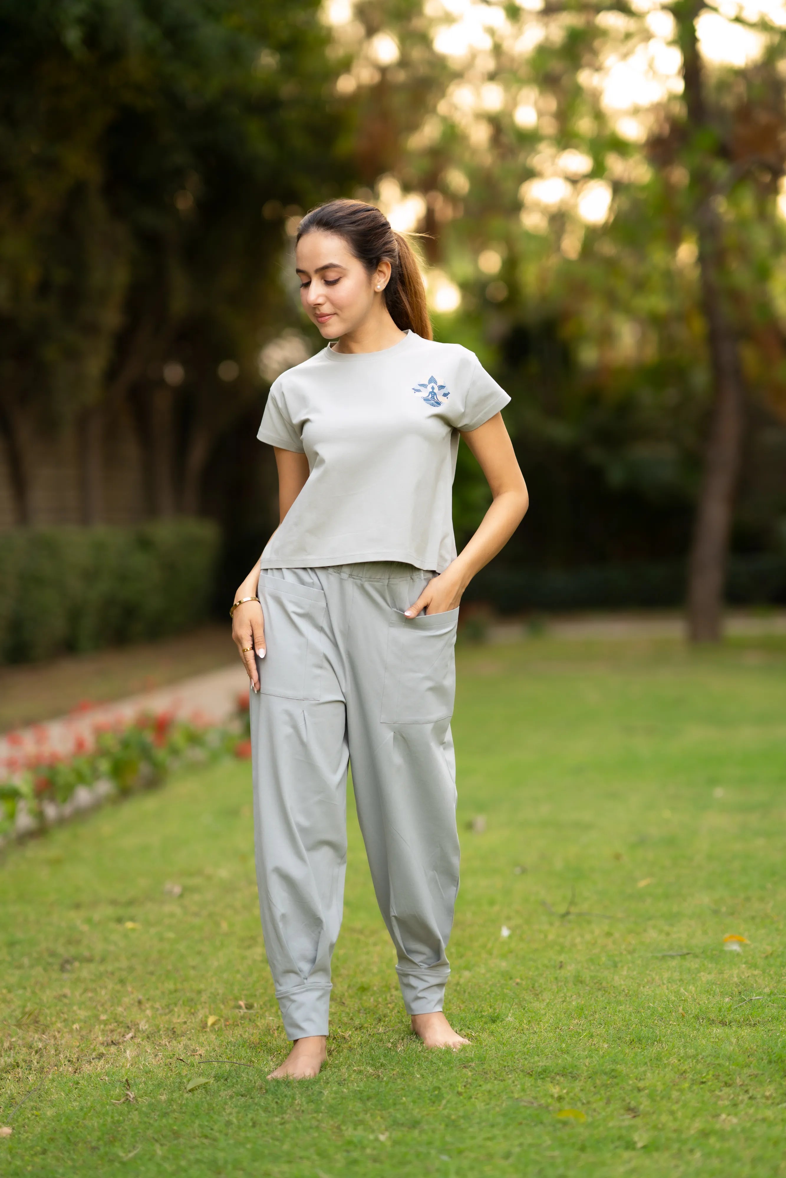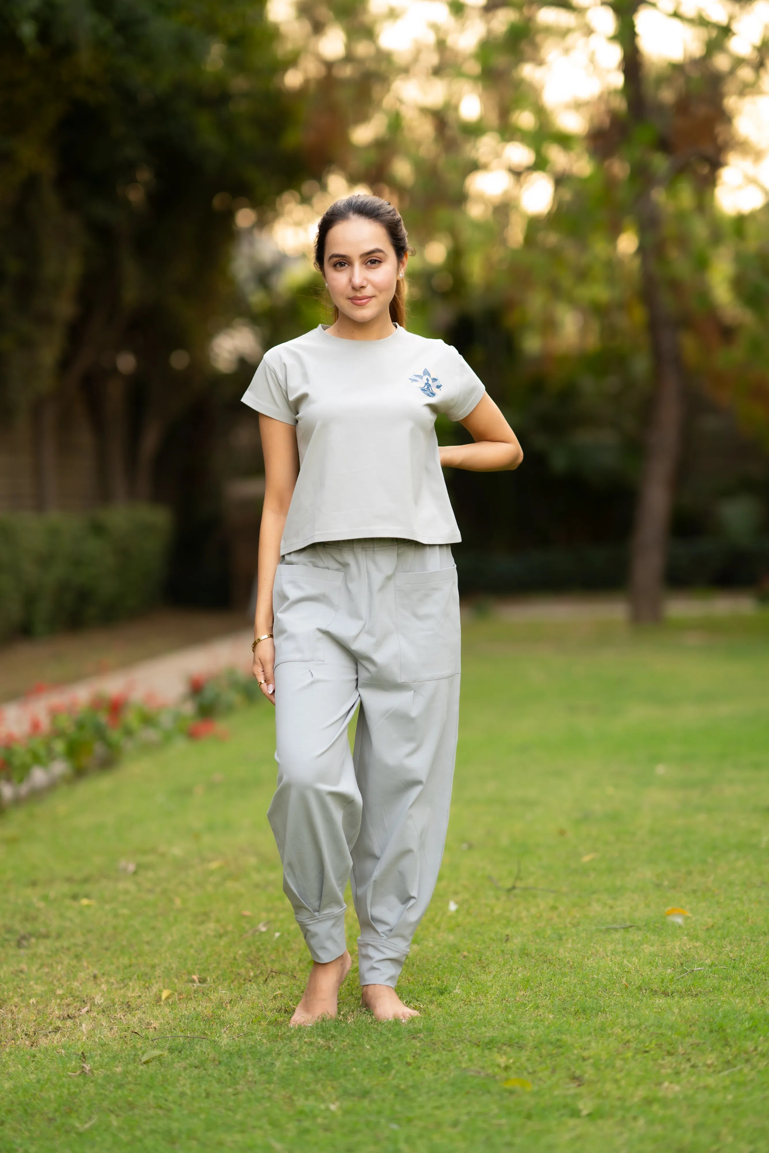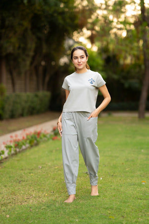 Cloudy Grey Lycra Cotton Get set with the cotton yoga set. Being a relaxed outfit, the outfit gives you enough space to stretch your arms and legs and be the way...