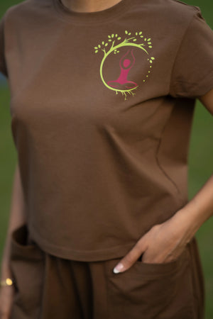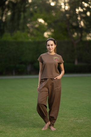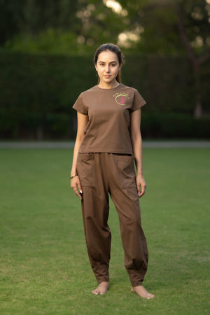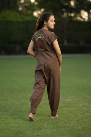 Earthy Brown Lycra Cotton Get set with the cotton yoga set. Being a relaxed outfit, the outfit gives you enough space to stretch your arms and legs and be the way...
