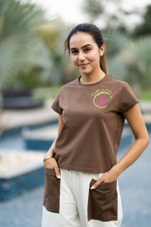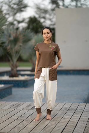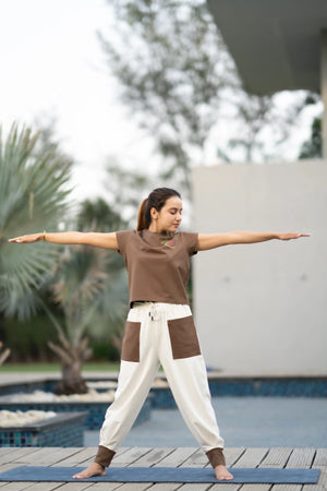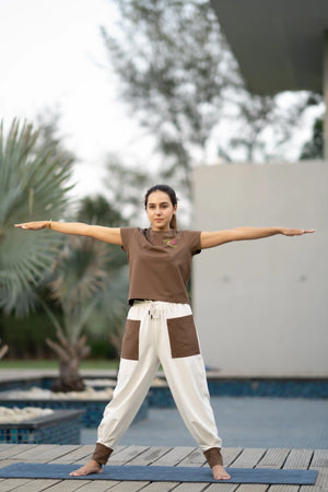 Earthy brown & off white lycra cotton Get set with the cotton yoga set. Being a relaxed outfit, the outfit gives you enough space to stretch your arms and legs and...