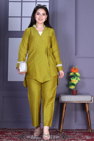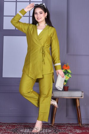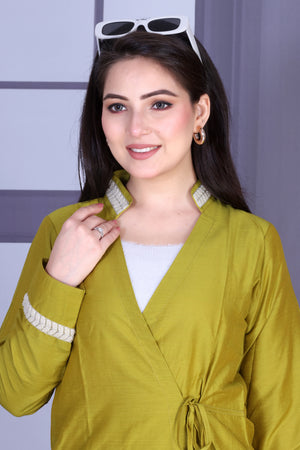 Olive Wrap Cotton Silk Co-ord Set