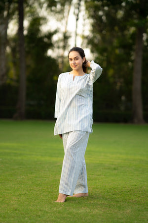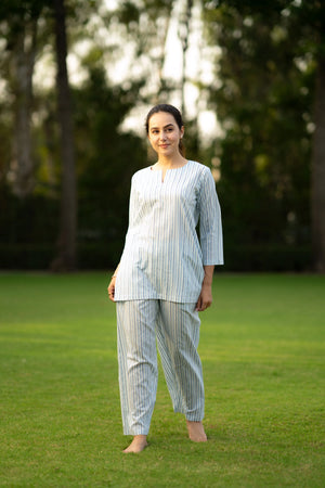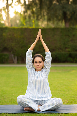 White & Sky blue Cotton Wanna go for a light evening walk? Get set with the cotton yoga set. Being a relaxed outfit, the outfit gives you enough space to stretch...