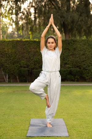 Made from soft and comfortable cotton, this yoga set features the space you need. It has an adjustable draw string for every need. Feel the freedom through it. The fit is so roomy, that it lets you breathe through every pose. This set connects you with nature leading you peace within.