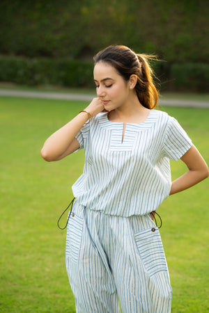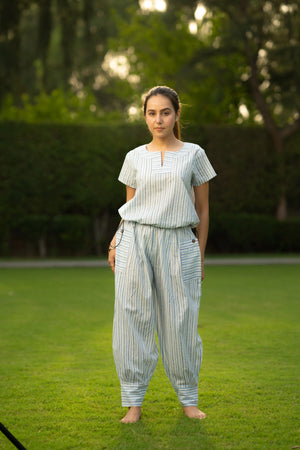 White & Sky blue Cotton Made from soft and comfortable cotton, this yoga set features the space you need. It has an adjustable draw string for every need. Feel the freedom...